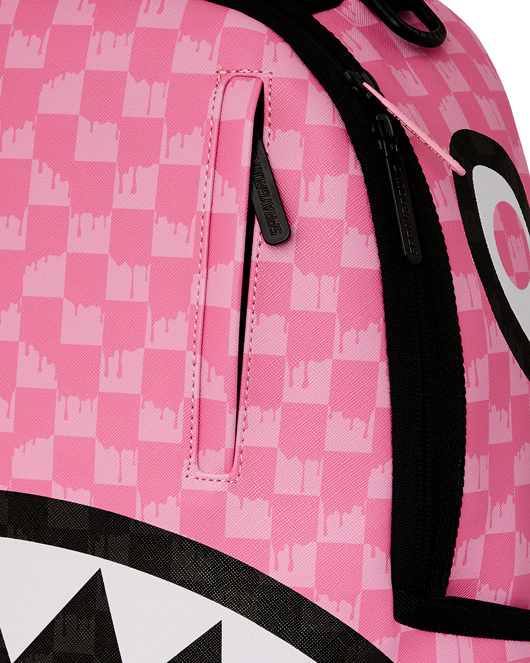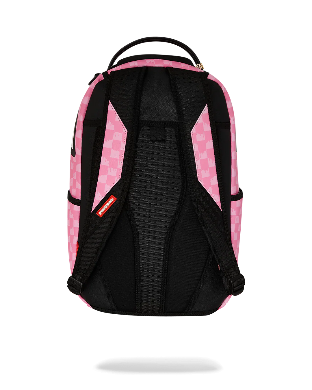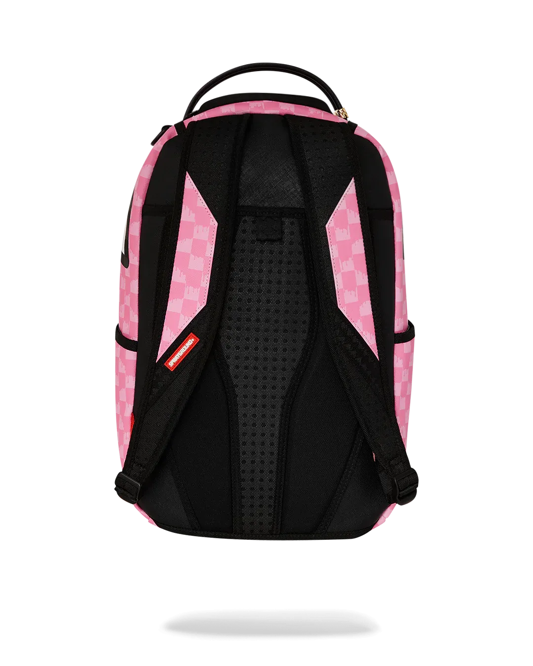 Dimensions: 18" x 6" x 11.5" • Front zipper pocket • Side pockets • Zippered Stash pocket • Separate velour sunglass compartment • Ergonomic mesh back padding • Adjustable Straps for custom sizing • Gold zippers with metal hardware • Metal "Sprayground Authentic" badge • Slide through back sleeve connects to carry-on luggage to free your hands