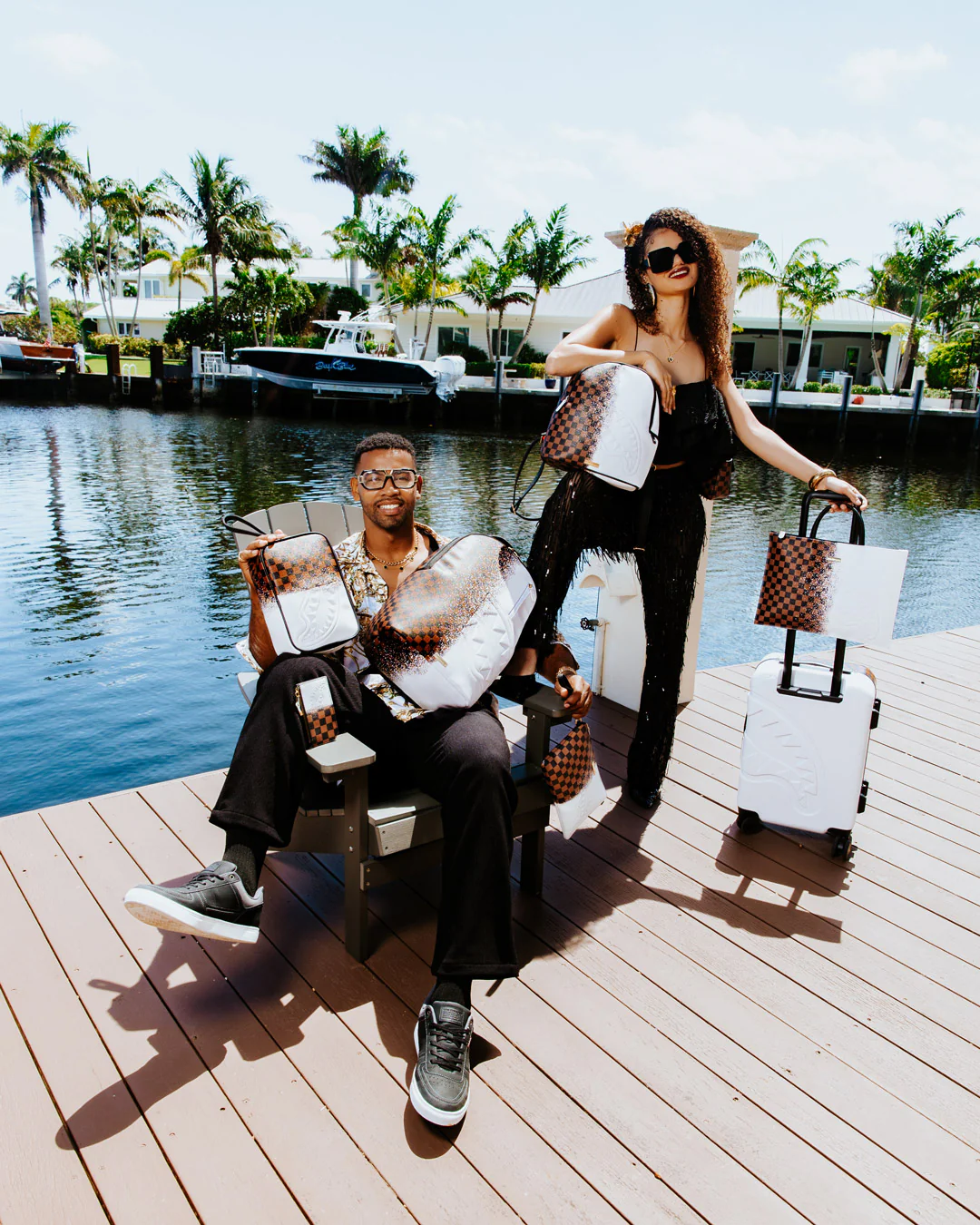 Dimensions: 10" x 5" x 11.5" • Two large main zippered compartments • Side pockets • Zippered Stash pocket • Adjustable straps for custom sizing • Gold zippers with metal hardware